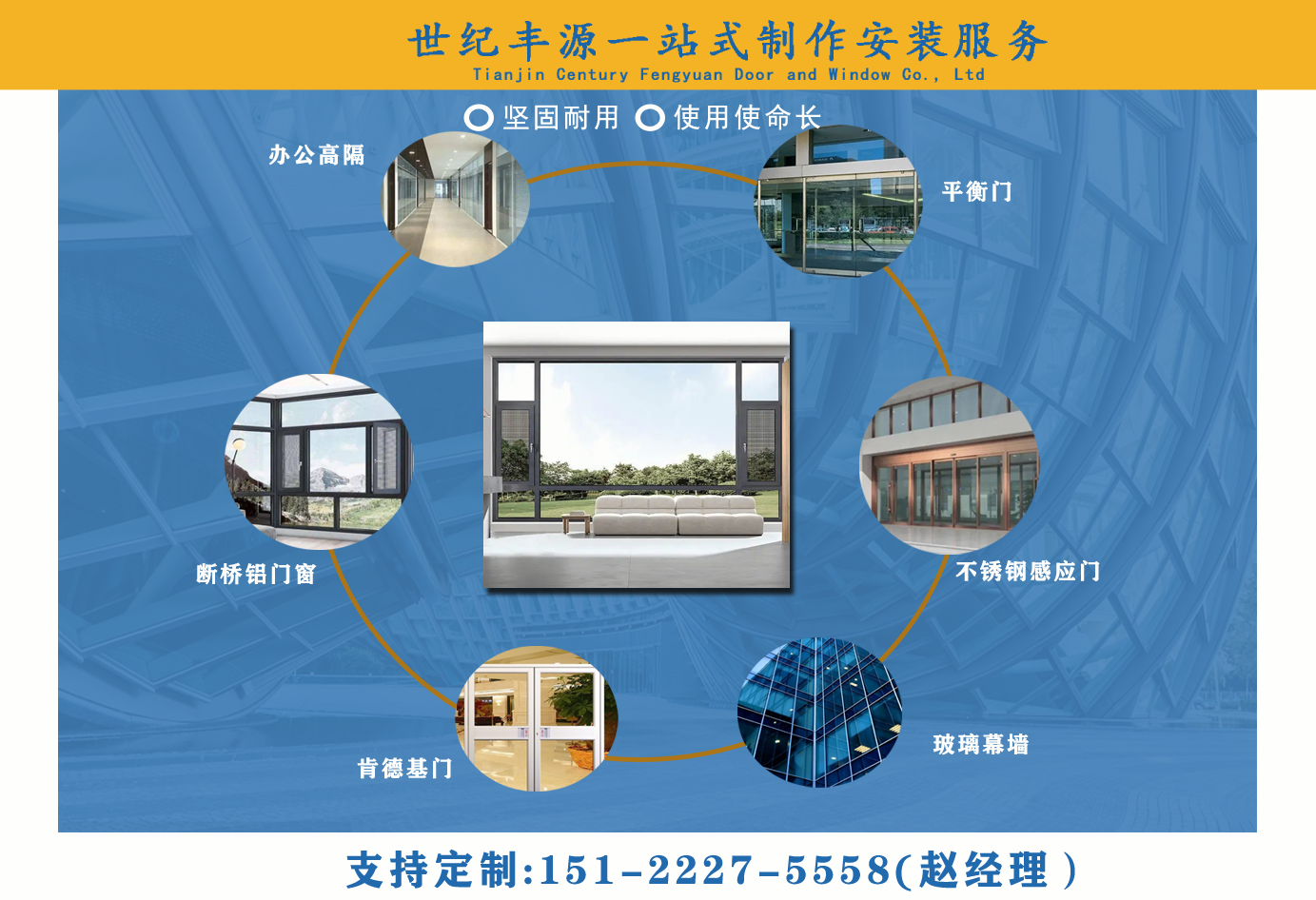 天津斷橋鋁門窗,天津玻璃幕墻,天津平衡門,天津肯德基門,天津不銹鋼感應(yīng)門,天津百葉窗,天津辦公高隔,天津制作安裝-天津世紀(jì)豐源門窗有限公司